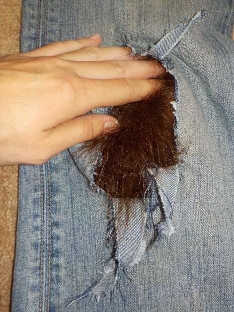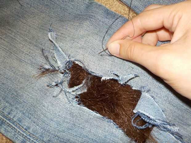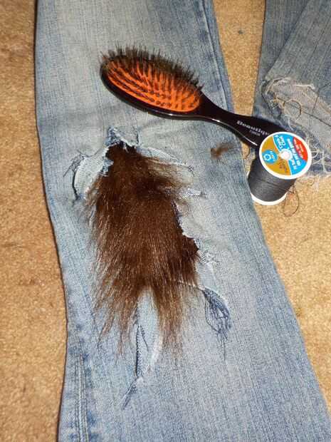 Me resbaló la sección de la piel dentro del agujero y separó hacia fuera con mis dedos por lo que no había espacios mostrando. Yo entonces ligeramente había cosido a mano la piel en el dril de algodón, con puntadas pequeñas. Después de que la piel era enteramente cosida en, rozó los pelos hacia fuera para un efecto completo realista.