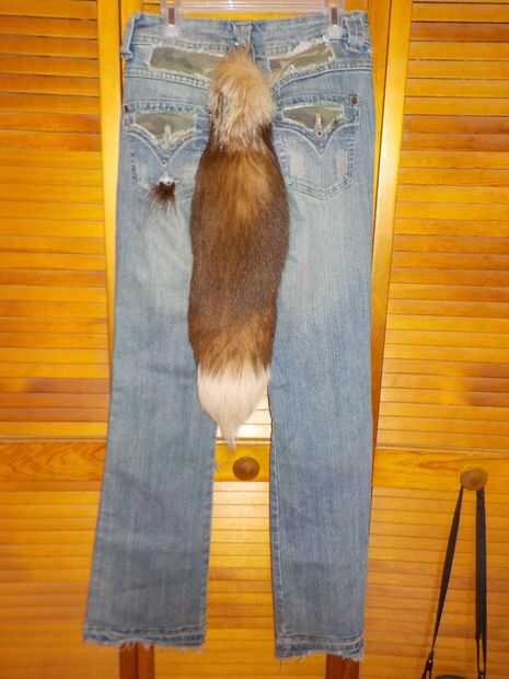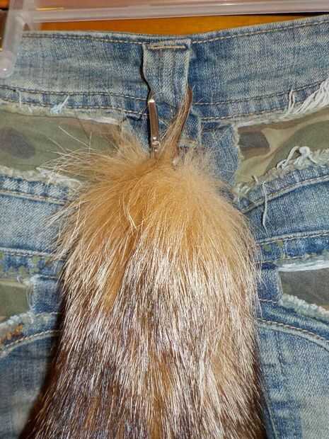Para la cola de este hombre lobo, simplemente utilicé una cola de zorro grande, real en color marrón oscuro que empareja de cerca. La cola del zorro fue atada a un clip de manera que podría eliminarse fácilmente si es necesario. Colas también se pueden hacer de piel sintética si prefieren no utilizar la cosa real.