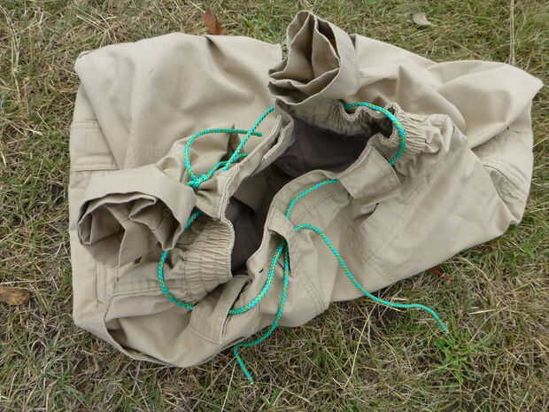 Recorren el largo del cable de las presillas y utilizar como un lazo para cerrar la parte superior de su mochila. Llene con cosas más suave en el lado contra su cuerpo y cualquier otra cosa hacia el frente o la parte trasera de los pantalones. Los bolsillos pueden sostener su botella de agua, guantes, teléfono celular, etc.. Los bolsillos más los pantalones tienen mejor. Meter en su mochila nueva y de ir.