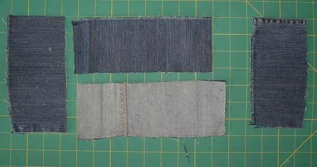 Las piezas restantes después de cortar el interior y exterior piezas se utilizará para los bolsillos.