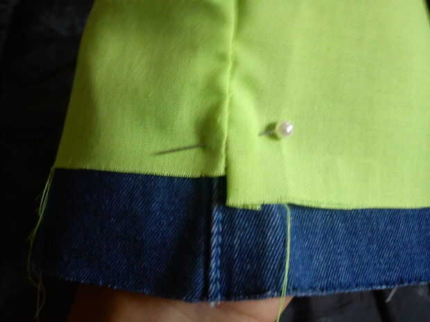 Alinee el lado de las costuras, este es muy importante mantener los refuerzos juntos. Entonces adelante, perno hasta la parte superior. Coser a lo largo de la parte superior, pero deje un espacio para convertir todo a través. No te olvides de recortar la tela sobrante.