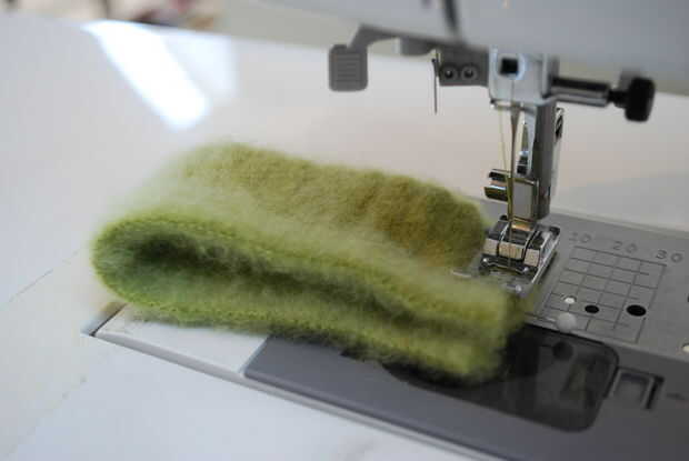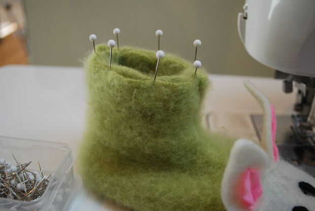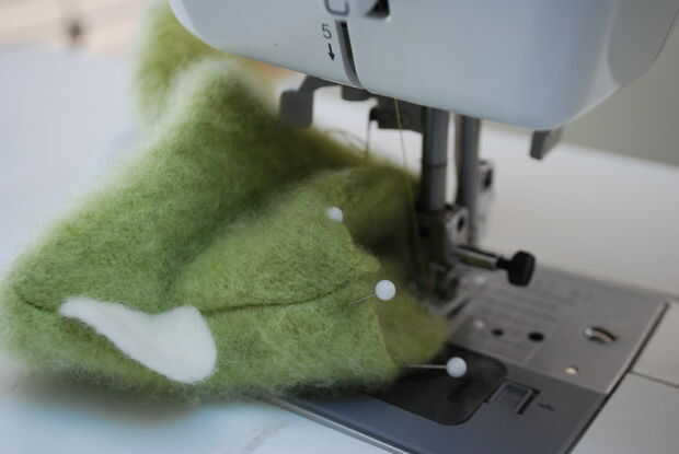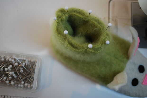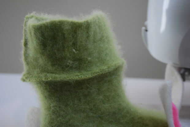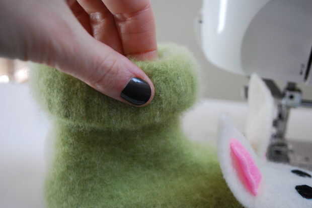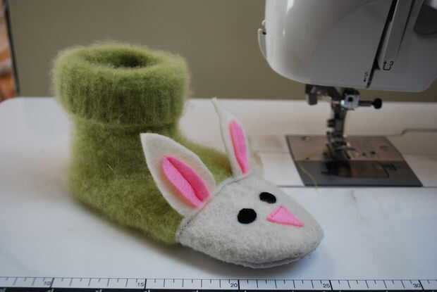 Pantuflas de conejo Fuzzy de reciclado suéteres y detalles de fieltro (5 / 5 paso)