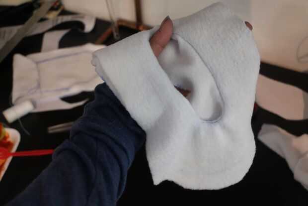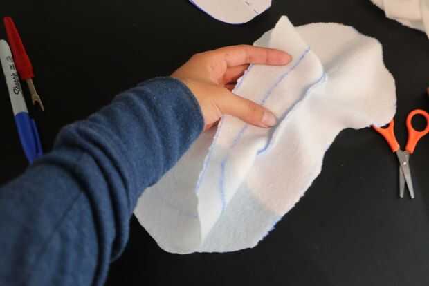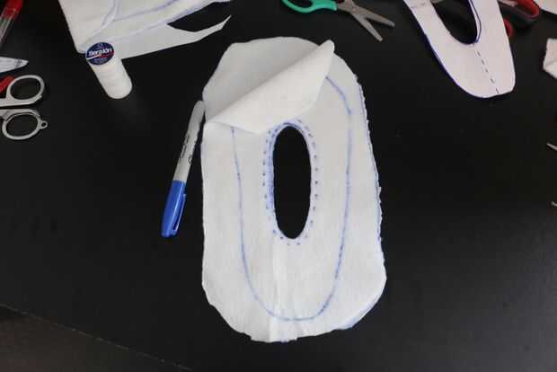 Poniendo los dos pedazos de tela con el ovalo al centro por la parte trasera de la tela, coser siguiendo el contorno, yo lo idea de una de la darme "para punteada marque con una línea".