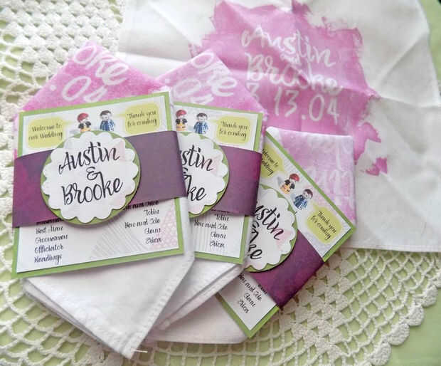 ¿Cuál es la mejor manera de presentar su programa de bodas a tus invitados que con un pañuelo personalizado para todos esas lágrimas felices y recordar el evento para años venideros?