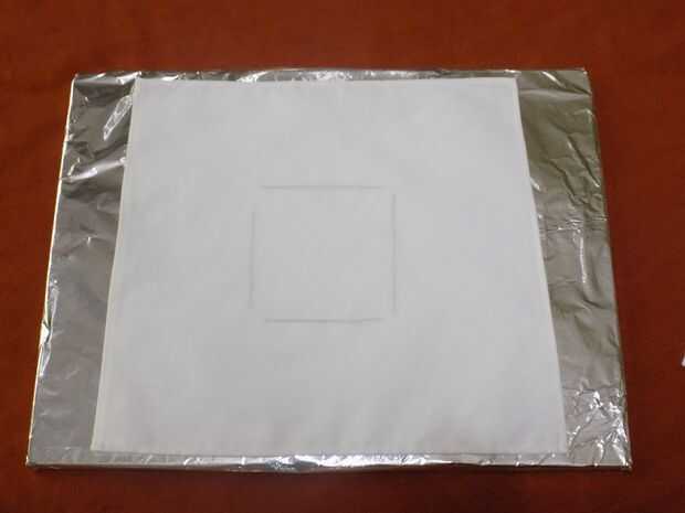 Envuelva una bandeja, tabla de cortar u otra superficie portátil dura con papel de aluminio.