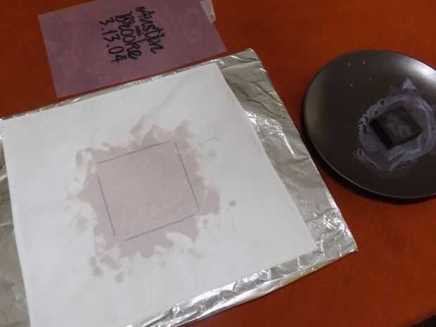 Pone la película sobre el pañuelo. Había grabado en el lugar, pero se dio cuenta rápidamente que no era necesario. La humedad de la colorante sostenga la película en su lugar a menos que sea particularmente ventoso.