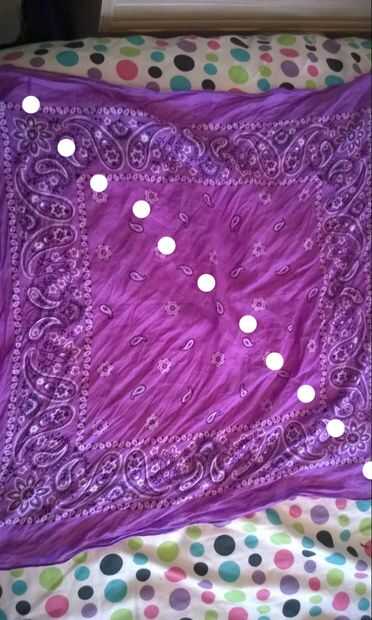 Pone la Bandana hacia fuera plana. Imagina una línea que corre diagonalmente a través de él.