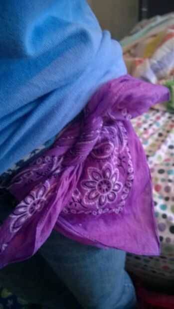 Doble nudo los extremos que pasaron a través de las presillas para garantizar el bolsillo de su pantalón. Meter los extremos sueltos detrás si no quieres colgar hacia fuera.