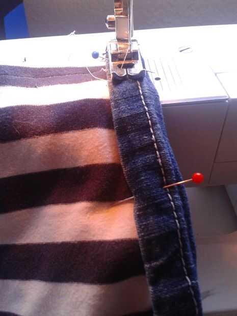 Pin y coser los bolsillos a la bufanda, dejando abierta la parte superior y tela en la parte inferior doblar sobre la espalda. Voltee la bufanda y doblar y coser a la tela restante de los cortos.
