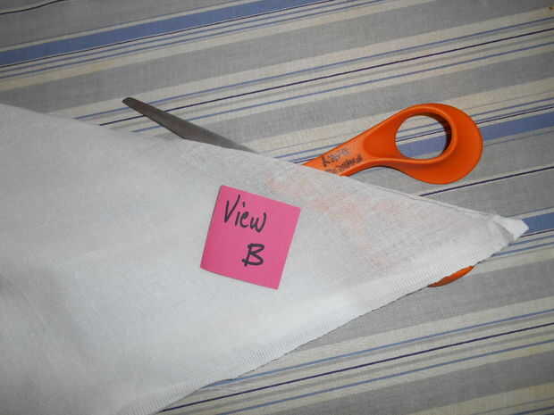 Cortar el saco de harina en el pliegue de la hipotenusa (vista B).