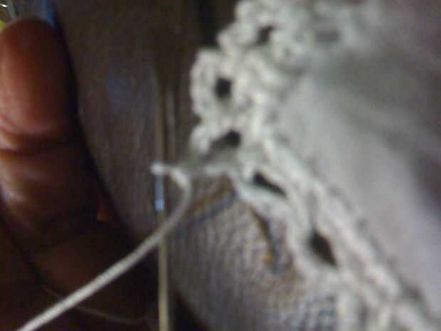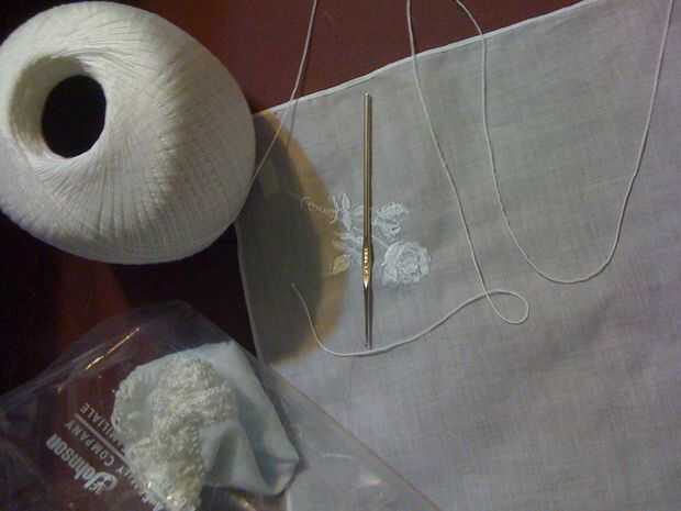 cadenas en Filet Crochet y ganchillos doble se utilizan para crear una cuadrícula y ganchillos doble se utilizan para llenar los espacios de la red para crear el patrón. Primero me introdujeron a ella por mi madre que creó un tapetito de nombre para