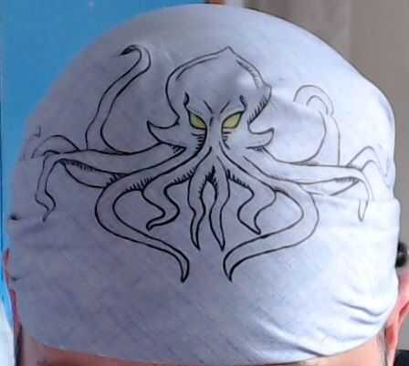 Hice otro pañuelo y no has aplicado cualquier diseño todavía. Éste fue teñido al mismo tiempo que el diseño de Cthulhu y tie-dyed segundo también. El Tie-muriendo fue bastante ligero y da un gran aspecto moteado.
