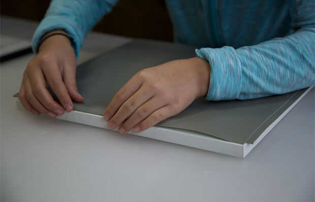 Una vez que el borde esté alineado, presione hacia abajo el borde de la PANYL por lo que se pega.