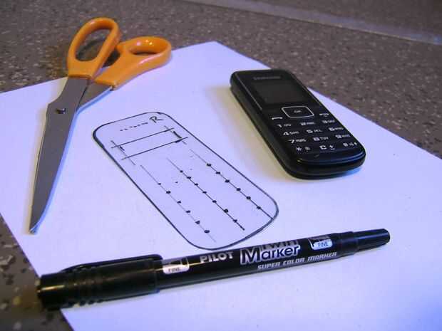 Copiar la configuración de tu móvil en una hoja transparente, pegue en el reverso del cuadro, punto, drill & archivo. Ahora tendrás seguro detrás de cada agujero, habrá un botón.
