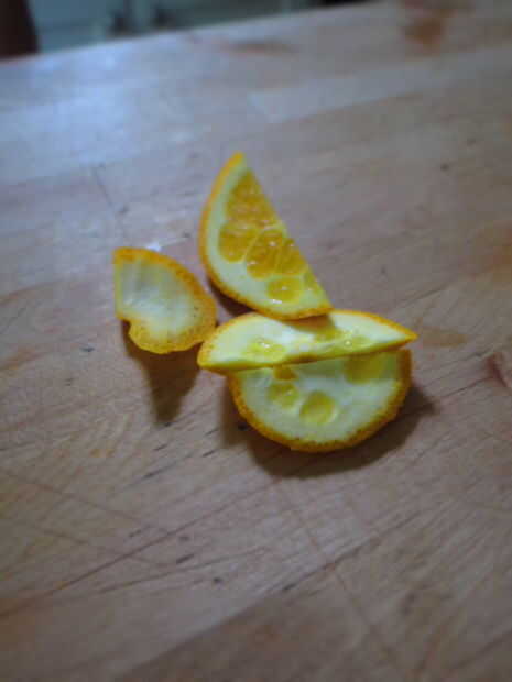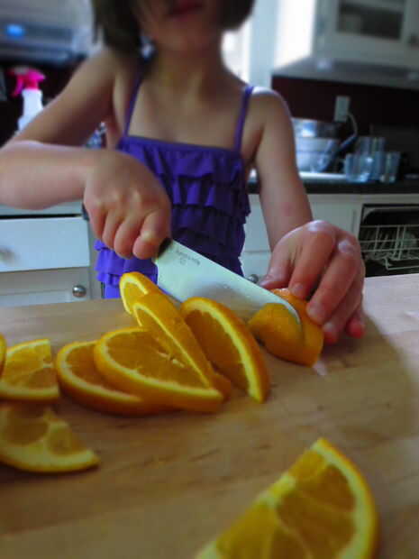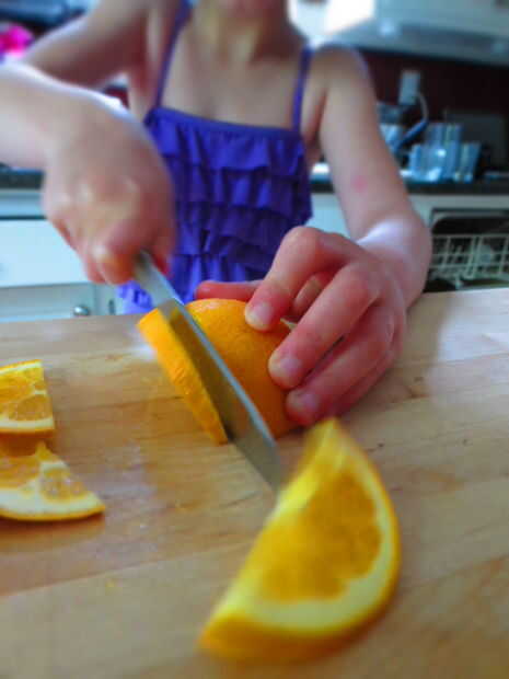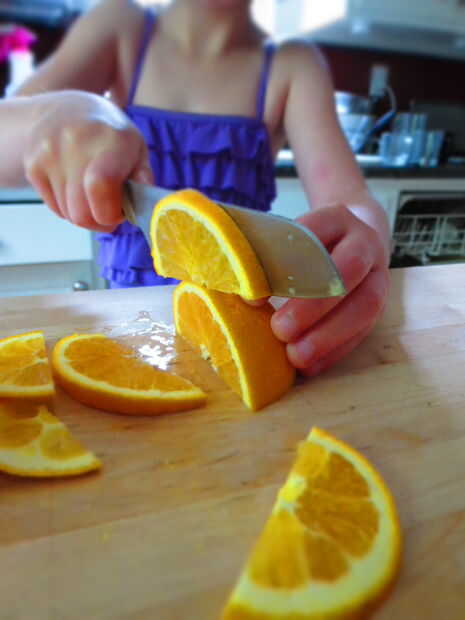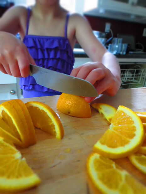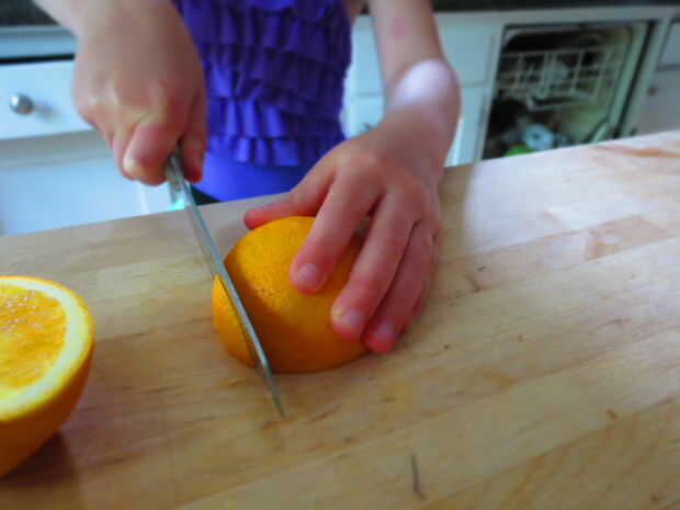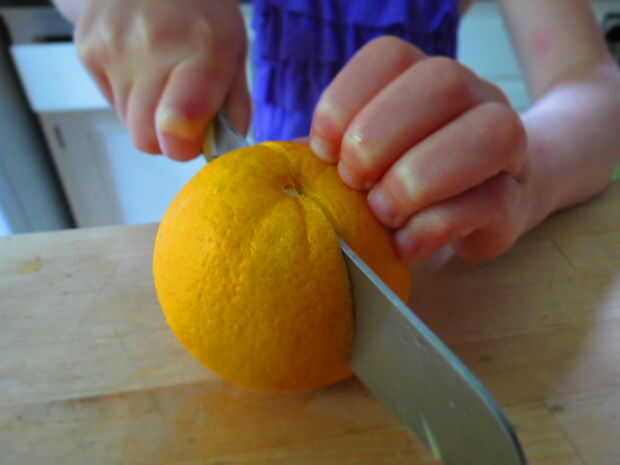 1. comienza por reducir a la mitad la naranja verticalmente, como antes.