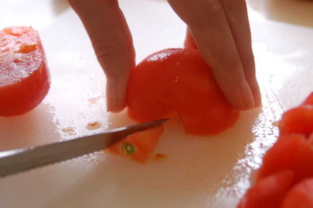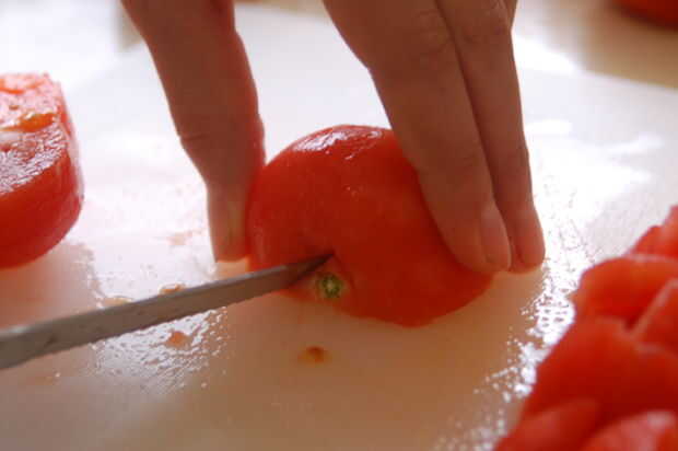1. Encienda los tomates boca abajo y un poco cortado X él.