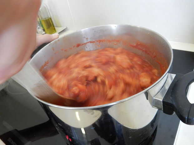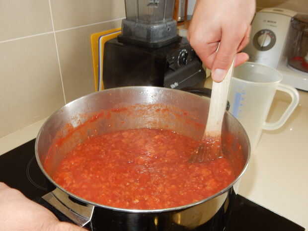 4. Después de aproximadamente media hora usted puede Agregar un sorbo de vino tinto, pero es sólo optionall. Mantenga en la cocina, cata y añadiendo materiales hasta que son felices con el resultado.