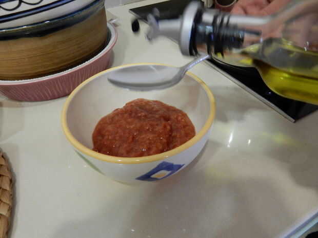 Servir la sopa en tazones. Añadir el aceite de oliva (¡ muy importante!). Servir a tus amigos, familiares y a sí mismo.