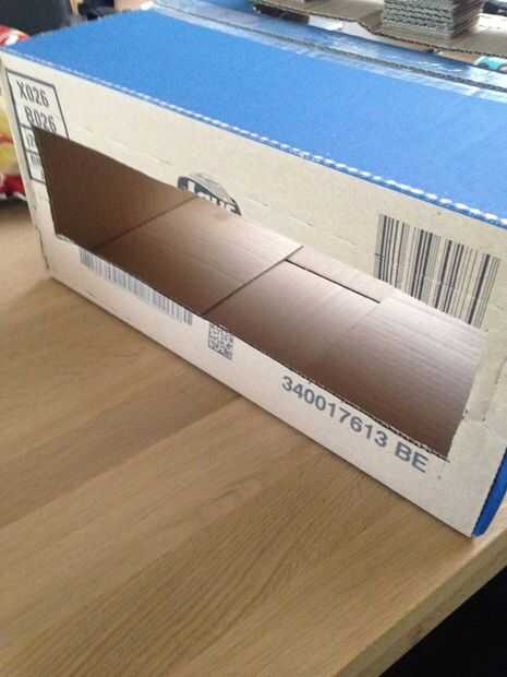 Corte rectangular en la parte posterior de la caja. Tamaño no es importante, aunque debe ser bastante grande.
