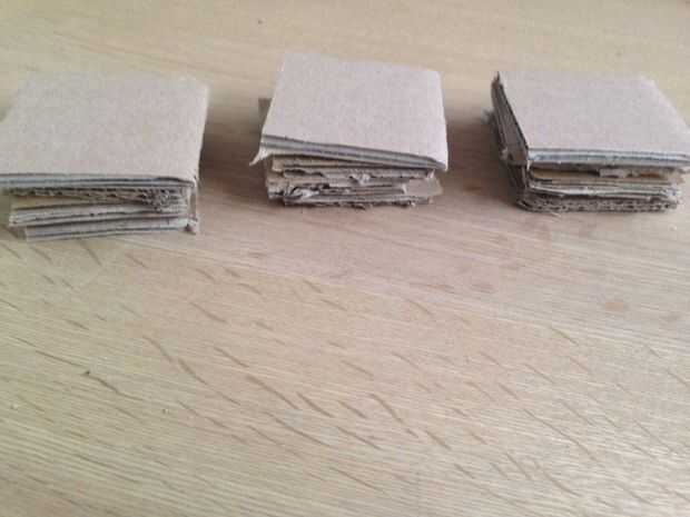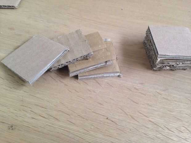 También corta cuatro cuadrados del mismo tamaño (aproximadamente de 50mm a 50mm). Usted necesitará 18 (siempre en múltiplos de 3)! La creación de tres pilas de seis de alto.