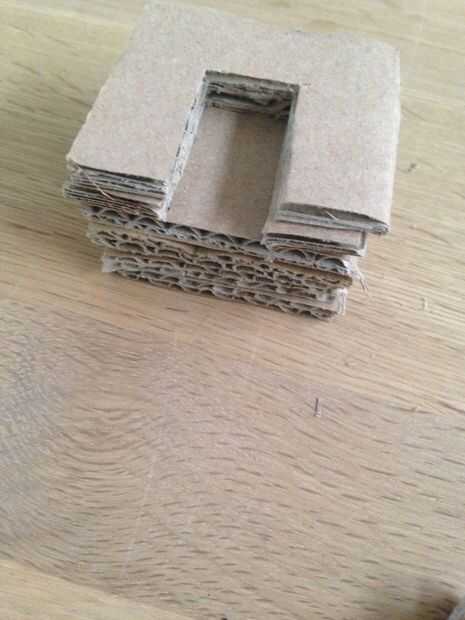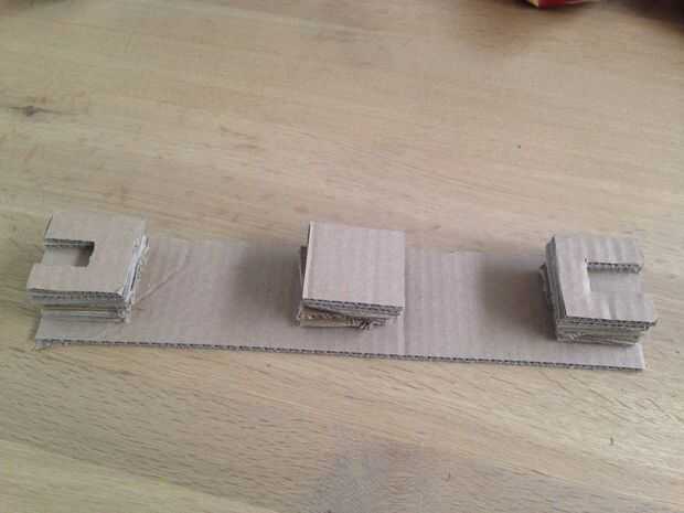 Ponerlos en la pila de cuatro plazas donde se llevaron dos plazas. La creación de 3 pilas. Y ponerlos en el orden indicado en los cuadros y encolarlos. Después de esto pegue a uno de los rectángulos de cartón