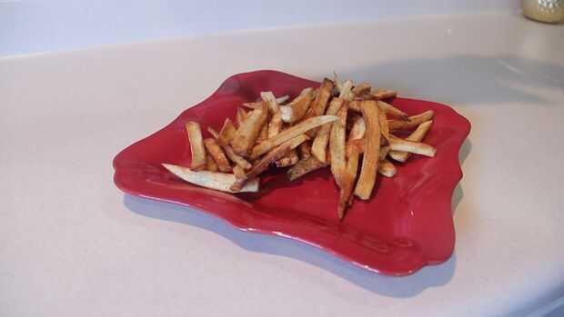 ¿Sanas y rápidas fritas sin grasa? Patatas se olvide y trate de plátano verde.Plátano es mucho mejor opción ya que no necesita unos 20-30 minutos en el horno, pero sólo unos pocos minutos en pan y es suficiente con sólo cucharadita de aceite.También