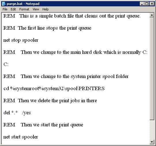 REM Este es un fichero por lotes simple que limpia hacia fuera la cola de impresión.