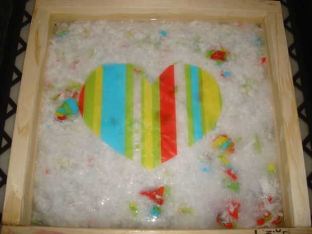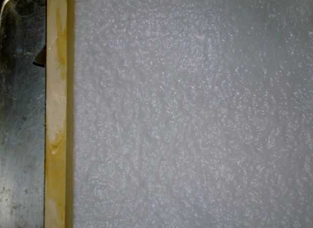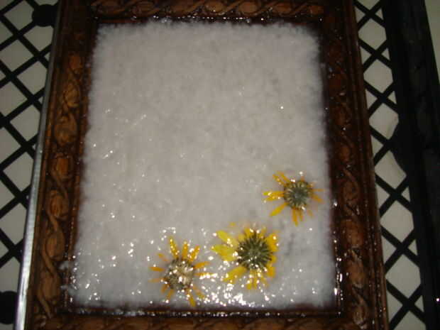 Repetir una vez más que sumergir el marco barbas en el baño de agua revolviendo con su dedo y permitiendo que la pulpa formar el marco uniformemente.