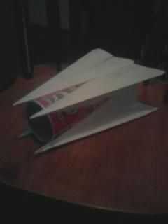 Este es el producto final después de la terminación de todos los aviones de papel. Asegúrese de que están bien pegadas a la lata. También vas a querer poner cinta de las alas de cada avión de papel para mantenerlos juntos.