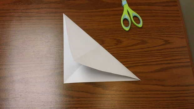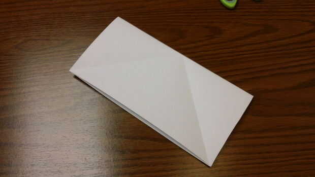 • Su plaza debe tener un pliegue de una esquina a lo contrario. Ahora doblar una esquina arrugada al otro y abrir copia de seguridad.