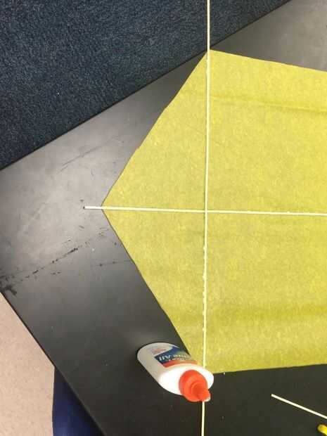Agarrar otro pincho y fíjelo con pegamento verticalmente sobre la cometa