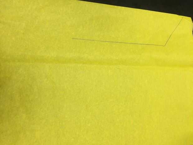 Hacer una línea de 10 pulgadas a partir de la segunda línea va hacia el pliegue formando un ligero ángulo.