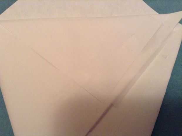Ahora, hay papel en la parte superior. Así que uno de ellos doble hacia abajo y cinta adhesiva, como se muestra en fotos. A continuación, voltear la taza y doble el otro extremo hacia abajo y cinta de la misma manera que como el otro, como se muestra en fotos.
