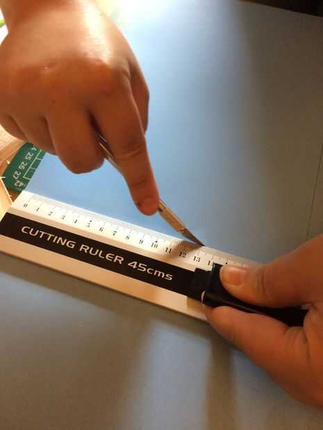 Para esto utilizamos una regla de metal y el bisturí fiel pero es cierto que una guillotina habría sido una mejor herramienta!