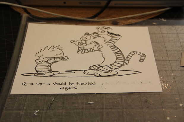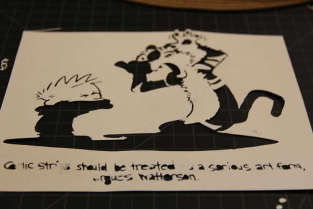 Mientras que Watterson mismo nunca comercializado las tiras, este papel versión Silhouette Cameo de uno de sus cómics más emblemáticos captura la creatividad y genialidad en el arte de Watterson. Usando una imagen que encontré en línea, fácilmente abrí lo en el programa de Cameo, y tenía la máquina recortarlo para mí.