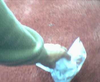 1. recoger bolsa de plástico para alimentos que cayeron al suelo.