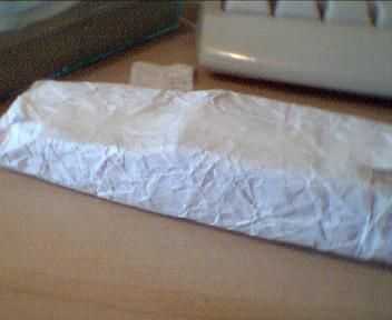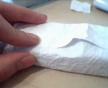 5. tirar papel apretado alrededor de la parte más estrecha.