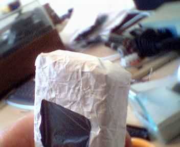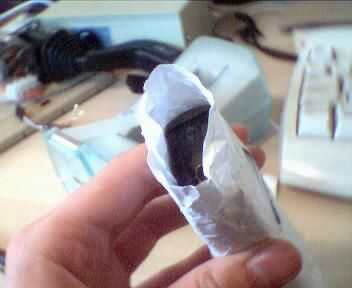 3. tirar del papel apretado alrededor de la parte más ancha del teléfono.