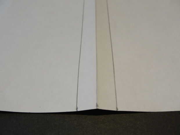 Hacer una línea de 3/8" de cada borde y hacer lo mismo a ambos lados de la línea media. Esto crea el esqueleto de fosfato azúcar del ADN.