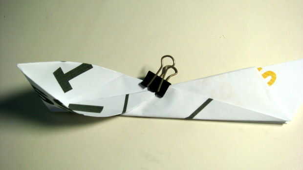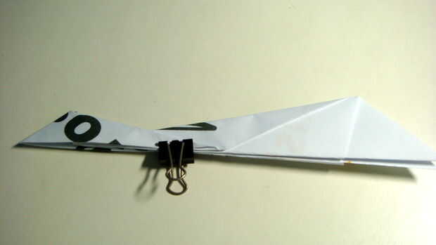 Bien [[video (http://www.youtube.com/watch?v=fiQ1_2mGCtA, {width: 425, altura: 350})]] es un avión de papel de nariz chata que ganó el libro mundial de records! papel de avión vuela mejor fuera, pero con este papel plano u lo fling para arriba como u