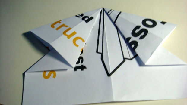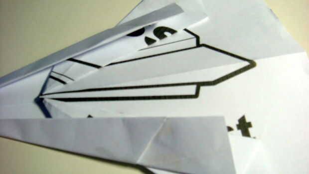 Bien [[video (http://www.youtube.com/watch?v=fiQ1_2mGCtA, {width: 425, altura: 350})]] es un avión de papel de nariz chata que ganó el libro mundial de records! papel de avión vuela mejor fuera, pero con este papel plano u lo fling para arriba como u