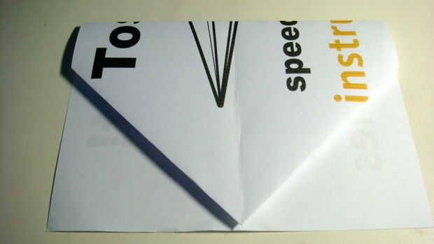 tome un pedazo de papel de 8.5 por 11" y doblar por la mitad del camino largoPS: este es mi primer instructable así que bueno.Paso 1: step2 doblar la parte superior dos esquinas hasta el pliegue el último pliegue hizo entonces doble el triángulo en l