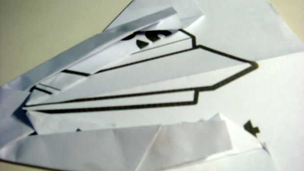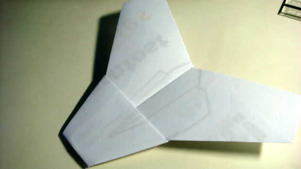 Esto no es un avión de papel media! Se desliza en lugar de volar. No ir rápido. Y es un anillo! La más pequeña que he conseguido que se está haciendo fuera de tarjetas. No vuelan si son más pequeños que el. Este es el único avión de papel que conozco