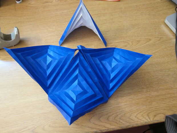 La forma en la que se une a los bordes de estos 4 paraboloides hiperbólicos es el mismo método que se utiliza para unir paraboloides hiperbólicas para el resto de este proyecto. La clave para unirse a los paraboloides hiperbólicos es asegurarse de que está uniendo los lados correctos, por lo tanto este instructable y muchas fotos.