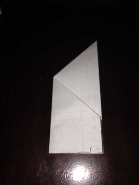 tome un pedazo de papel de 8.5 por 11" y doblar por la mitad del camino largoPS: este es mi primer instructable así que bueno.Paso 1: step2 doblar la parte superior dos esquinas hasta el pliegue el último pliegue hizo entonces doble el triángulo en l