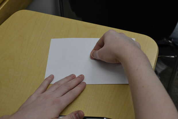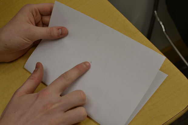 2) dobla el papel otra vez a lo largo del pliegue.