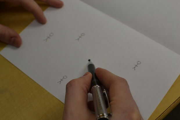 1) rellena un punto oscuro en el lado de papel del tamaño de un guisante.