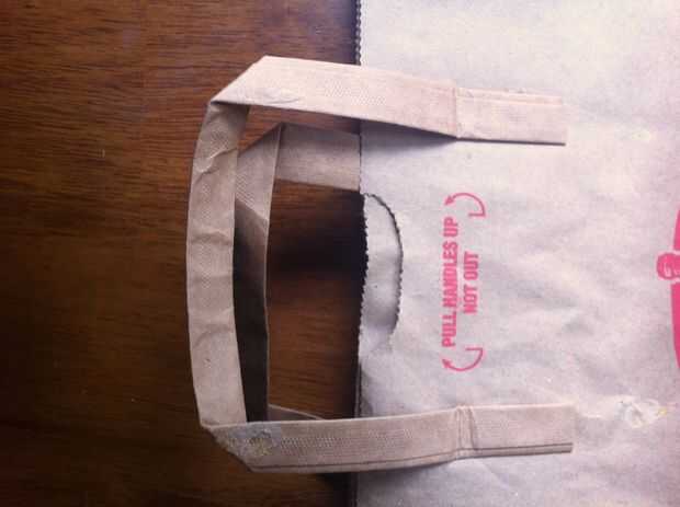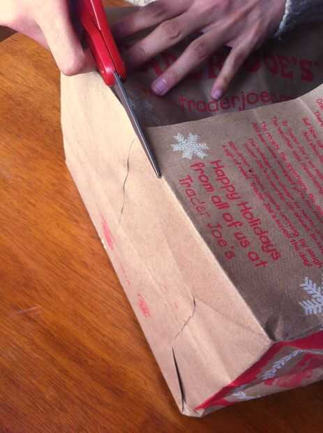 1. Retire los mangos y cortar la bolsa de papel a lo largo de la costura. A continuación corte la parte inferior de la bolsa para hacer una pieza plana de papel.