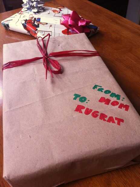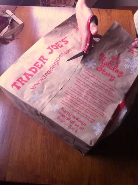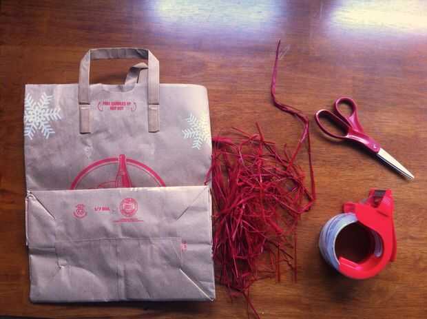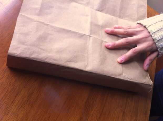 2. Envuelva tu presente para que el lado marrón llano será el exterior del regalo. Ayuda a utilizar los pliegues originales de la bolsa para doblar el papel sobre los bordes del regalo.