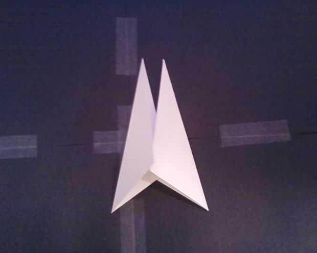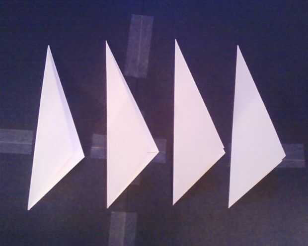 7. poner dos de los triángulos como se muestra en la imagen décimo. Debería verse como la imagen 11. Únalos con cinta adhesiva.